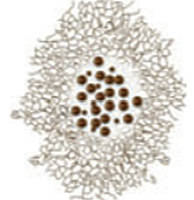 Периферические глобулы с ретикулярной сетью / однородной зоной в центре | Центральный ретикулярный или однородный компонент, однородные глобулы по периферии |