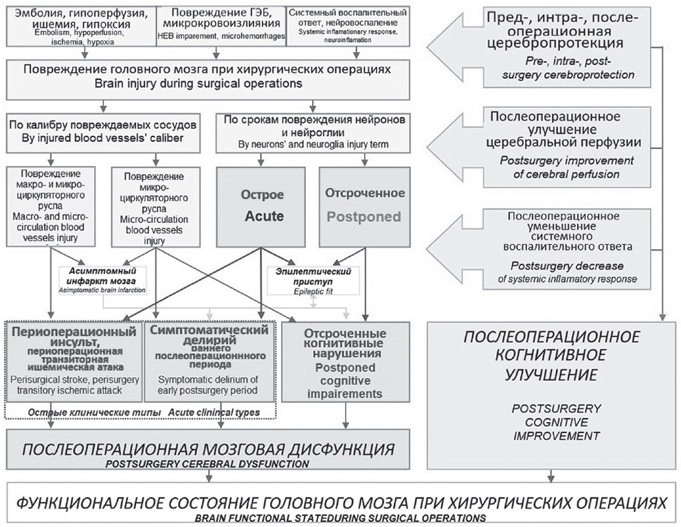 Рис. 2. Послеоперационная мозговая дисфункция и послеоперационное когнитивное улучшение при хирургических операциях