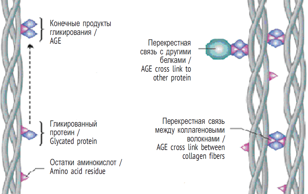 Гликирование коллагена ведет к гликированию белков базальных мембран сосудов, что снижает мембранный транспорт.