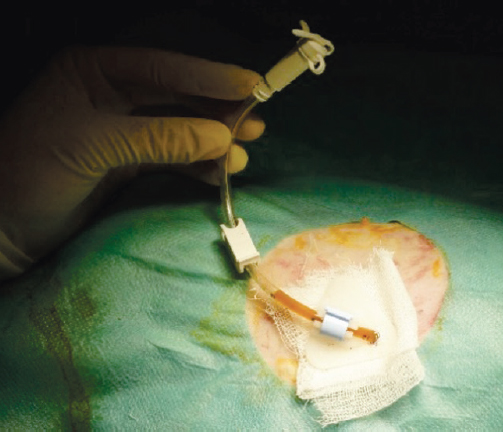 Fig. 7. Percutaneous endoscopic gastrostomy, Pezzer’s catheter with external devices from branded kits