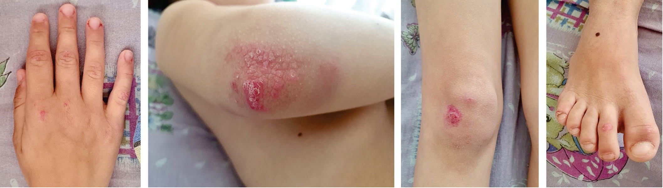 Рис. 2. Морфология и локализация сыпи на коже конечностей при ювенильном дерматомиозите 5-летней пациентки