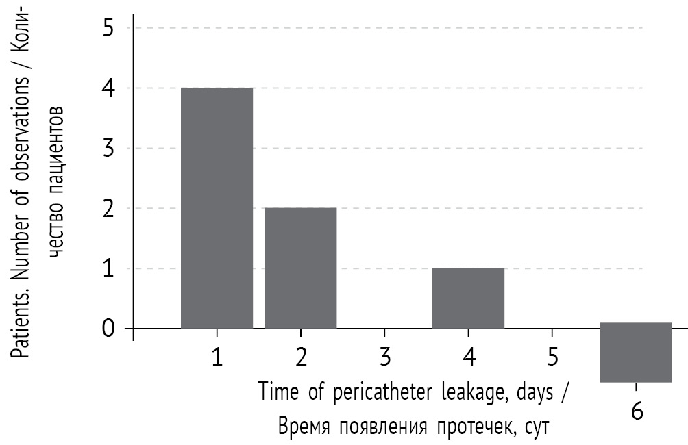 2. The time of pericatheter leakage manifestation in children receiving peritoneal dialysis for acute renal failure