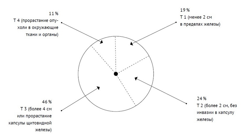 Рис. 2. Степень распространения (Т) рака щитовидной железы у детей