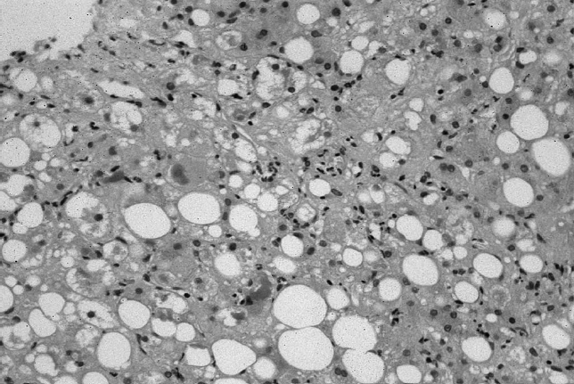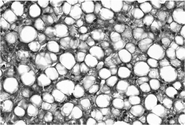 Рис. 1. Макровезикулярный стеатоз (окраска гематоксилином и эозином, ув. ×400)