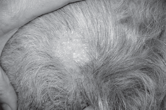 Рис. 3. Трихотилломания. Очаг, лишенный волос, на коже затылочной области головы / Fig. 3. Trichotillomania. The center, deprived of hair, on the skin of the occipital region of the head