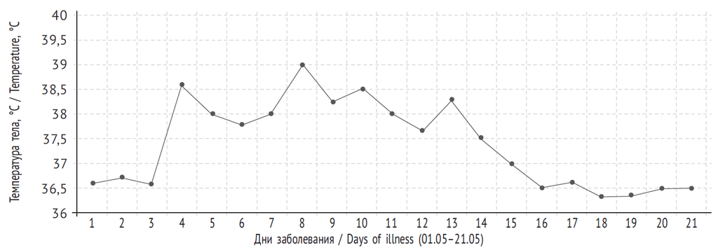 Рис. 3. Температурная кривая у больного эпидемическим паротитом подростка С., 17 лет / Fig. 3. The temperature curve of the teenager S., 17 years old