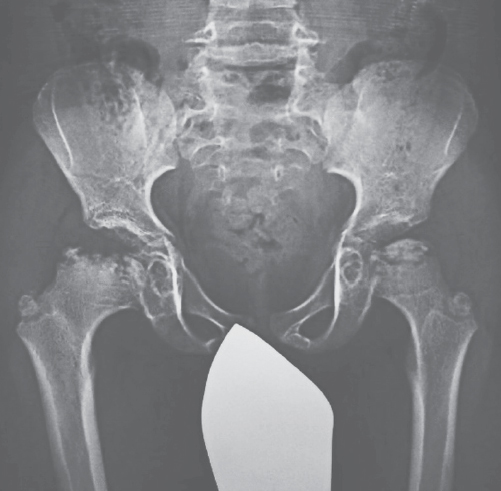 Рис. 5. Диспластические и дистрофические изменения тазобедренных суставов при