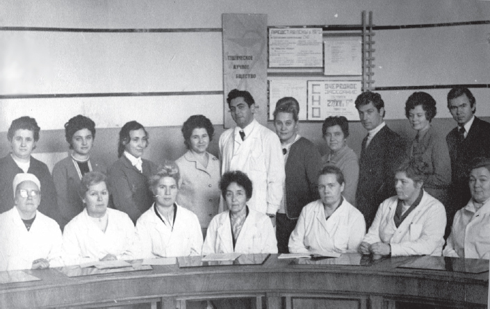 Fig. 2. A.V. Papayan — Assistent Professor, in the Сenter — Head of the Department of Faculty Pediatrics, Doctor of Medical Sciences, Professor A.A. Valentinovich, on the left — Professor of the Department of Hospital Pediatrics V.I. Kalinicheva (1973)