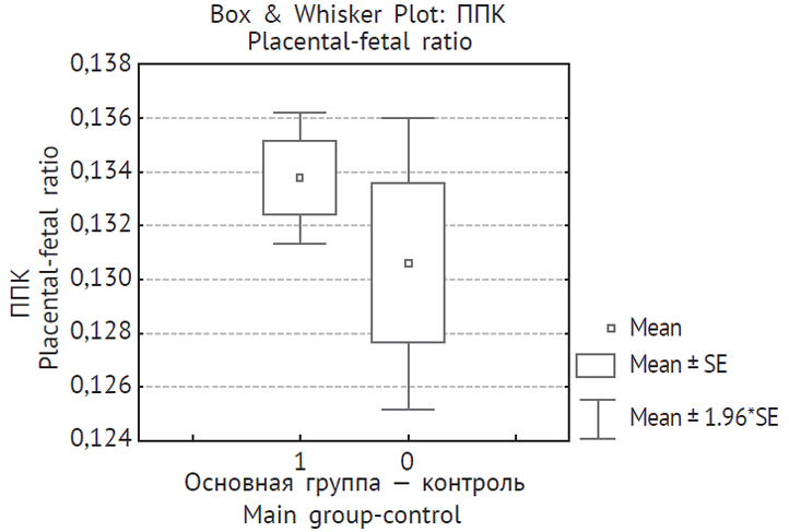 Рис. 2. Плацентарно-плодовый коэффициент у пациенток основной и контрольной групп