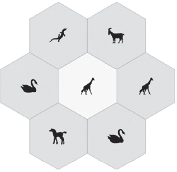 Рис. 5. Вариант теста из программы «Цветок». Ребенок должен найти изображение центрального объекта на одном из лепестков «цветка». Прибор фиксирует точность и время выполнения поставленной задачи