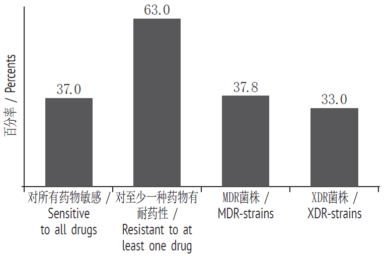 Среди стафилококков был выявлен высокий процент полирезистентных культур (MDR — multidrug-resistant) и штаммов с экстремальным фенотипом резистентности (XDR — extensively drug-resistant). Так, удельный вес MDR стафилококков составил 37,8 %, а на долю штаммов XDR пришлось 33,0 % (рис. 1).